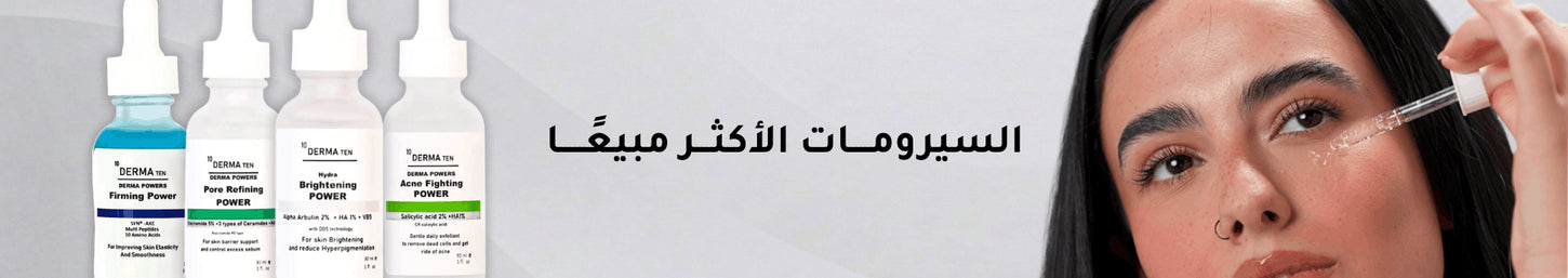 تخلصي من كل مشاكل غمقان البشره والتصبغات وآثار الحبوب بإستخدام سيروم التفتيح Derma 10 brightening power serum يحتوي علي ٢٪ الفا اربيوتين بتكنولوجيا DDS يحتوي علي ١٪ هيالرونيك اسيد للترطيب العميق يحتوي علي ٢٪ من الترانكسميك اسيد يحتوي علي Vitamin...